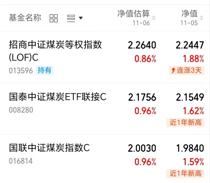 $招商中证煤炭等权指数(LOF)C(OTCFUND|013596)$昨天上涨1.88%,近三个月上涨15.72%,稳步抬升,后续表现值得期待。