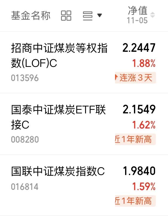 $国联中证煤炭指数C(OTCFUND|016814)$昨天上涨1.59%