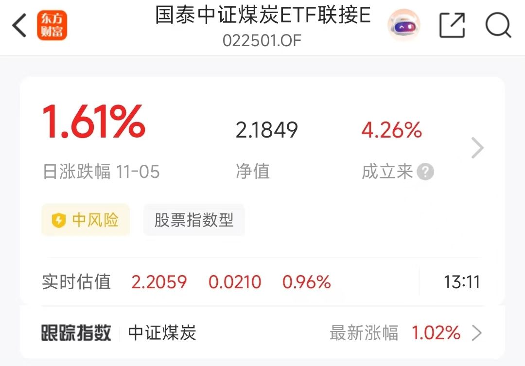 沪指站上4000点,资金面持续发力,主力资金单日净流入煤炭超18亿,看看持有的$国泰中证煤炭ETF联接E$(022501)实时估值上涨1.08%,资金面也给出强烈看涨信号,叠加煤炭ETF连续多日吸金,资金“高切低”布局防御资产的趋势明显。在北向资金同步净买入的背景下,资金合力已形成支撑,今日反弹是行情启动,后续资金持续进场将推动涨势深化,赶快抓紧上车,抢反弹。#4000点 到底要不要止盈?#