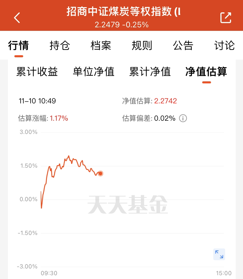 今天大盘整体走弱,煤炭板块却表现突出,逆市上涨。终端补库需求积极,叠加铁路运费优惠恢复,站台贸易商拉运量显著增加,推动煤矿库存快速去化。$招商中证煤炭等权指数(LOF)C(OTCFUND|013596)$今天盘中估值 1.17%,行情持续性不错。煤炭作为传统能源,在当前市场环境下比较吸引我。