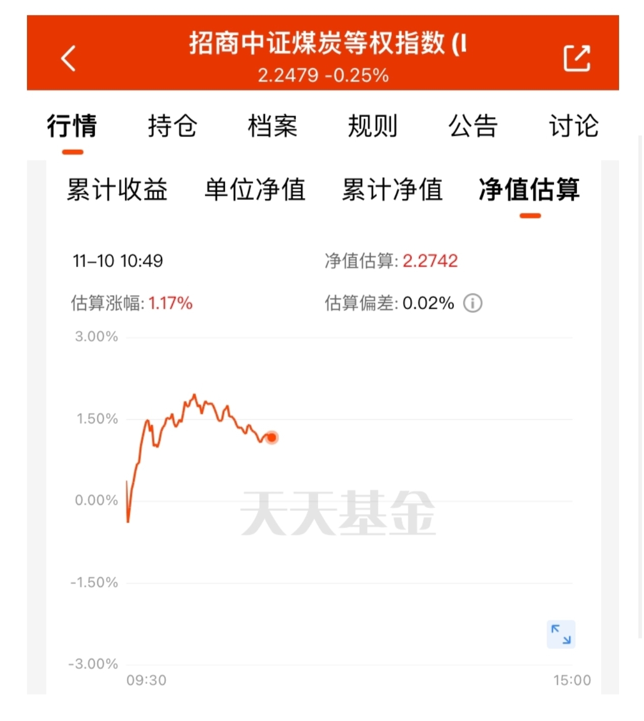 我关注的招商中证煤炭指数基金今天盘中估值涨了1.17%,近期走势比较稳健。虽然煤炭属于传统能源行业,但在当前市场环境下,我觉得它的表现还是值得关注的。毕竟在整体市场偏弱的时候,能看到这样逆势上涨的板块确实不多。