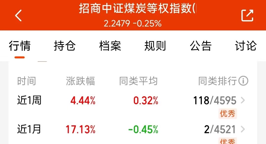 大盘今天震荡回调,煤炭板块却逆势大涨,近期表现很亮眼。$招商中证煤炭等权指数(LOF)C(OTCFUND|013596)$目前预估涨幅 0.63%,近一周涨 4.44%近期涨幅可观。四季度到了煤炭周期,这个方向值得看好,我准备分批加仓,期待能带来不错的收益!