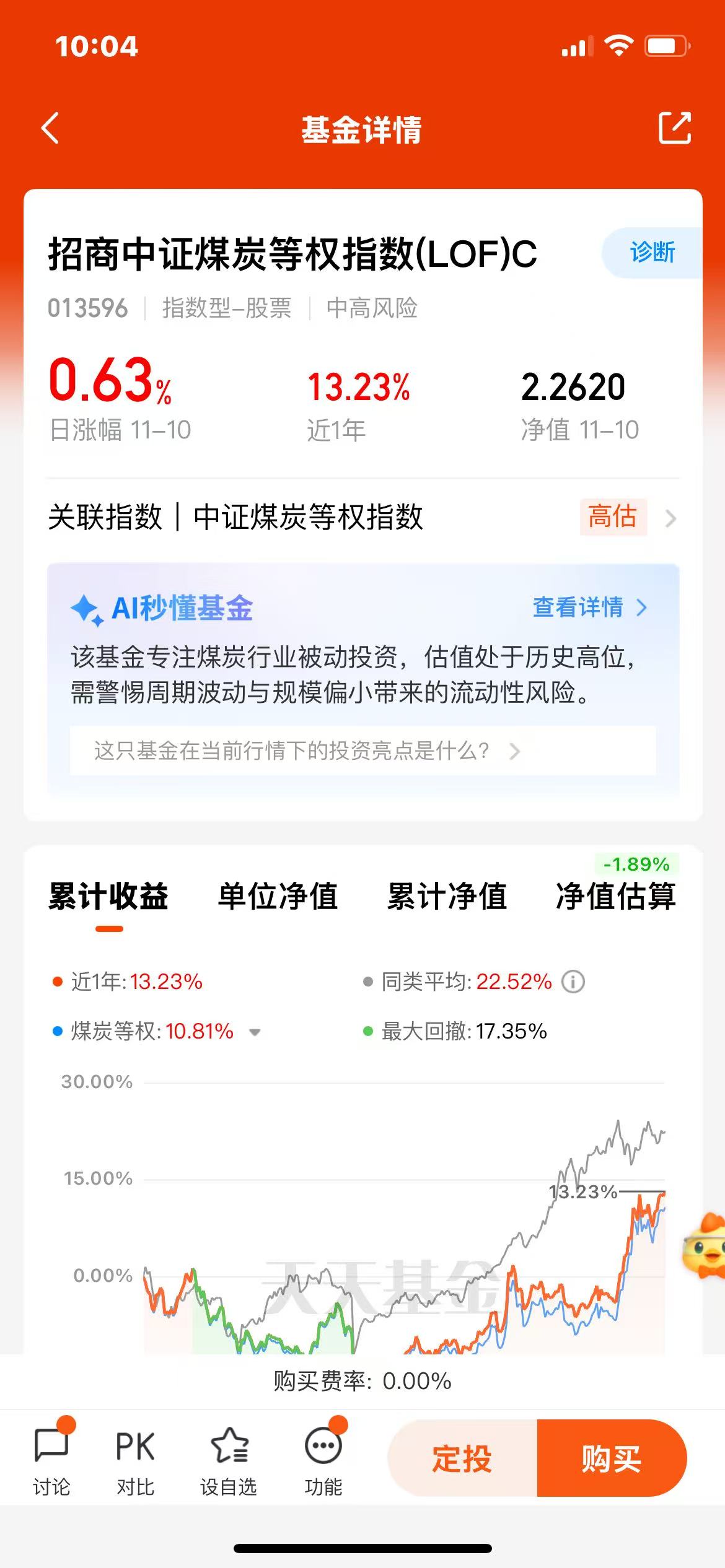 $招商中证煤炭等权指数(LOF)C(OTCFUND|013596)$近一个月上涨12.57%