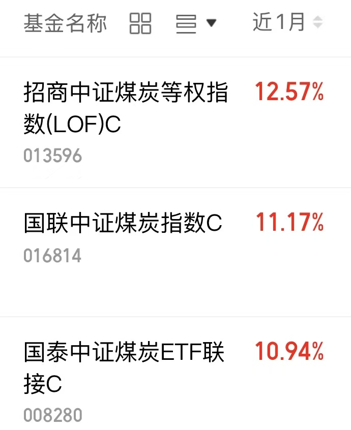 $招商中证煤炭等权指数(LOF)C(OTCFUND|013596)$近一周涨幅12.57%