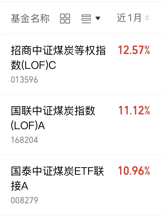 $招商中证煤炭等权指数(LOF)C(OTCFUND|013596)$近一周上涨12.57%