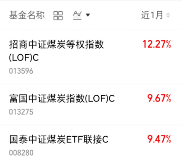 $招商中证煤炭等权指数(LOF)C(OTCFUND|013596)$近一个月上涨12.27%