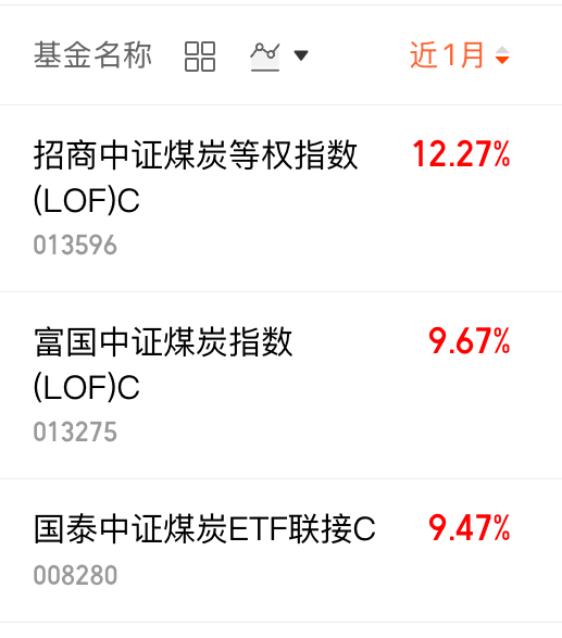 $招商中证煤炭等权指数(LOF)C(OTCFUND|013596)$.近一月+12.27%