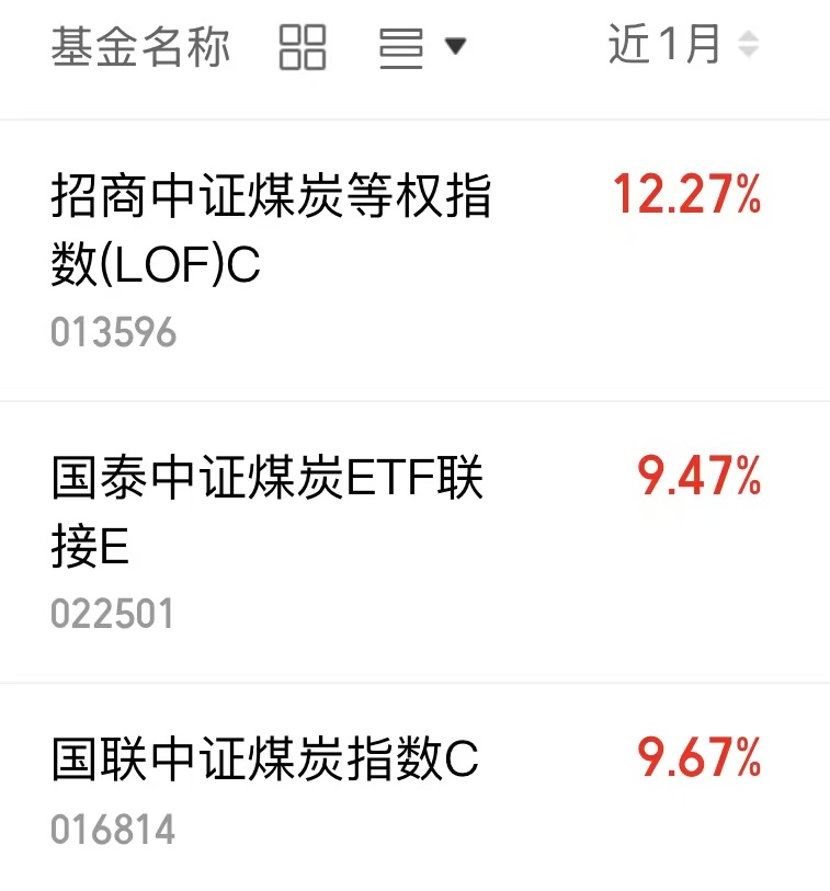 $招商中证煤炭等权指数(LOF)C(OTCFUND|013596)$近一个月上涨12.27%