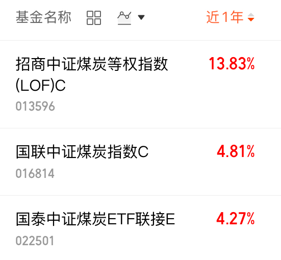 $国联中证煤炭指数C(OTCFUND|016814)$近一年+4.81%还不错