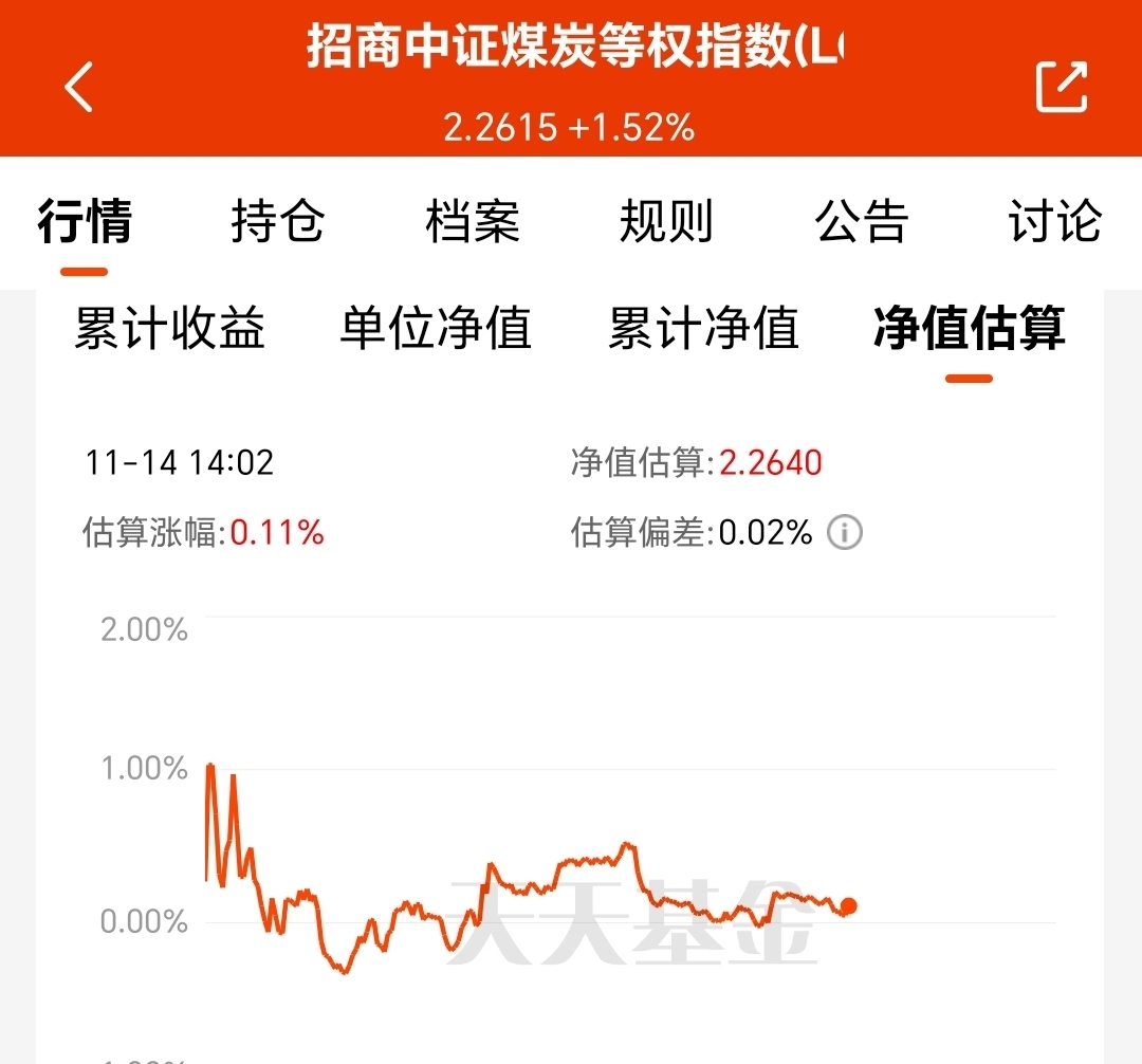 煤炭今天居然还能逆势上涨$招商中证煤炭等权指数(LOF)C$ 目前估值上涨0.11%。