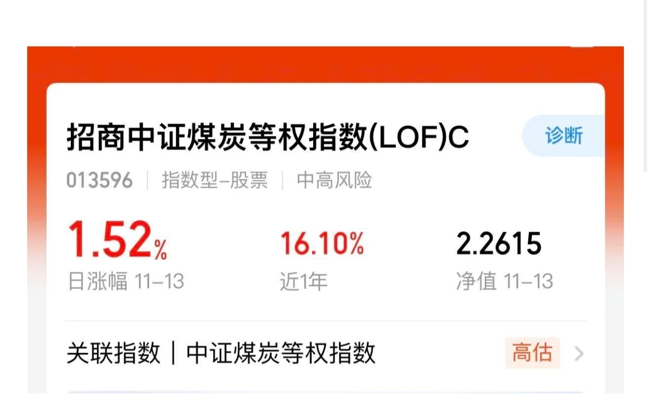 最近市场波动挺大,之前涨得好的几个板块这两天都在回调。不过我发现煤炭板块表现挺稳,最近一直在慢慢往上走,可能跟天气变冷有关系吧。我持有的招商中证煤炭等权指数(LOF)C昨天涨了1.52%,感觉这个趋势还能持续一段时间。虽然其他板块在调整,但煤炭这个方向我还是比较看好的,毕竟冬天用煤需求确实会增加。