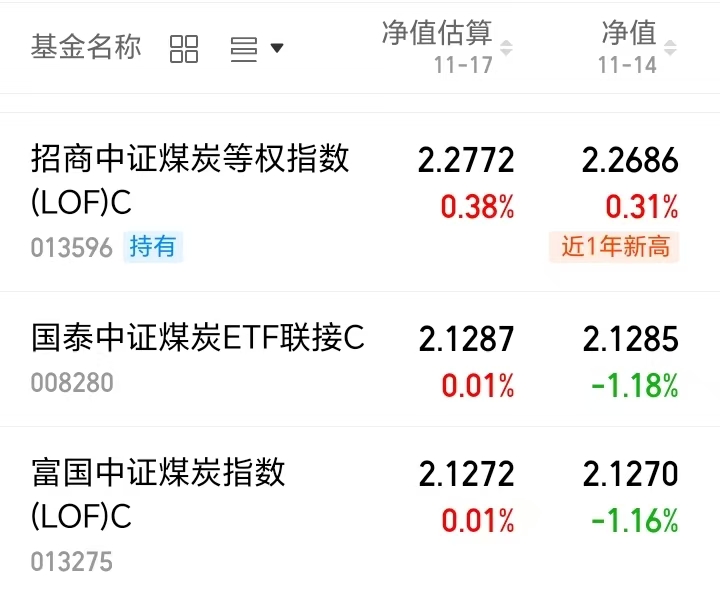 $富国中证煤炭指数(LOF)C(OTCFUND|013275)$上周五回调1.16%。
