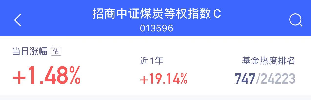 招商中证煤炭C今日继续发力,午盘估值上涨1.48%