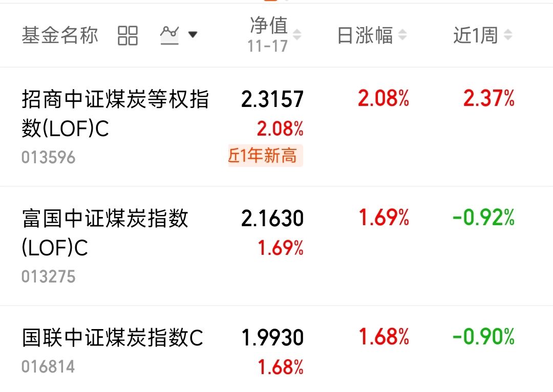 现在的行情,题材有机会的前提一定是权重在稳住指数而不是权重在砸盘,所以我还是选择周期资源和大金融,这2者稳住,后面行情才会有持续性。$招商中证煤炭等权指数(LOF)C(OTCFUND|013596)$昨日上涨2.08%,$富国中证煤炭指数(LOF)C(OTCFUND|013275)$昨日上涨1.69%,$国联中证煤炭指数C(OTCFUND|016814)$昨日上涨1.68%。