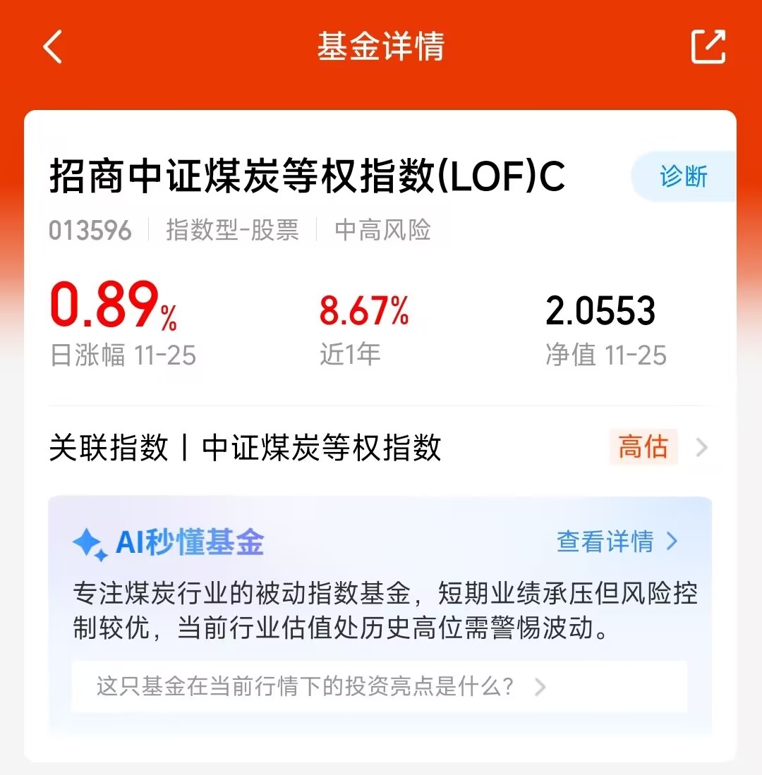 从量化角度看,高股息板块自身趋势、煤炭银行间市场成交额等构建的信号体系,目前仍都发出看多信号。$招商中证煤炭等权指数(LOF)C(OTCFUND|013596)$紧密跟踪中证煤炭等权指数,重仓中煤能源、宝泰隆等企业。它近六个月涨 15%。加上反内卷政策促进行业自律,煤炭方向我持续看好!