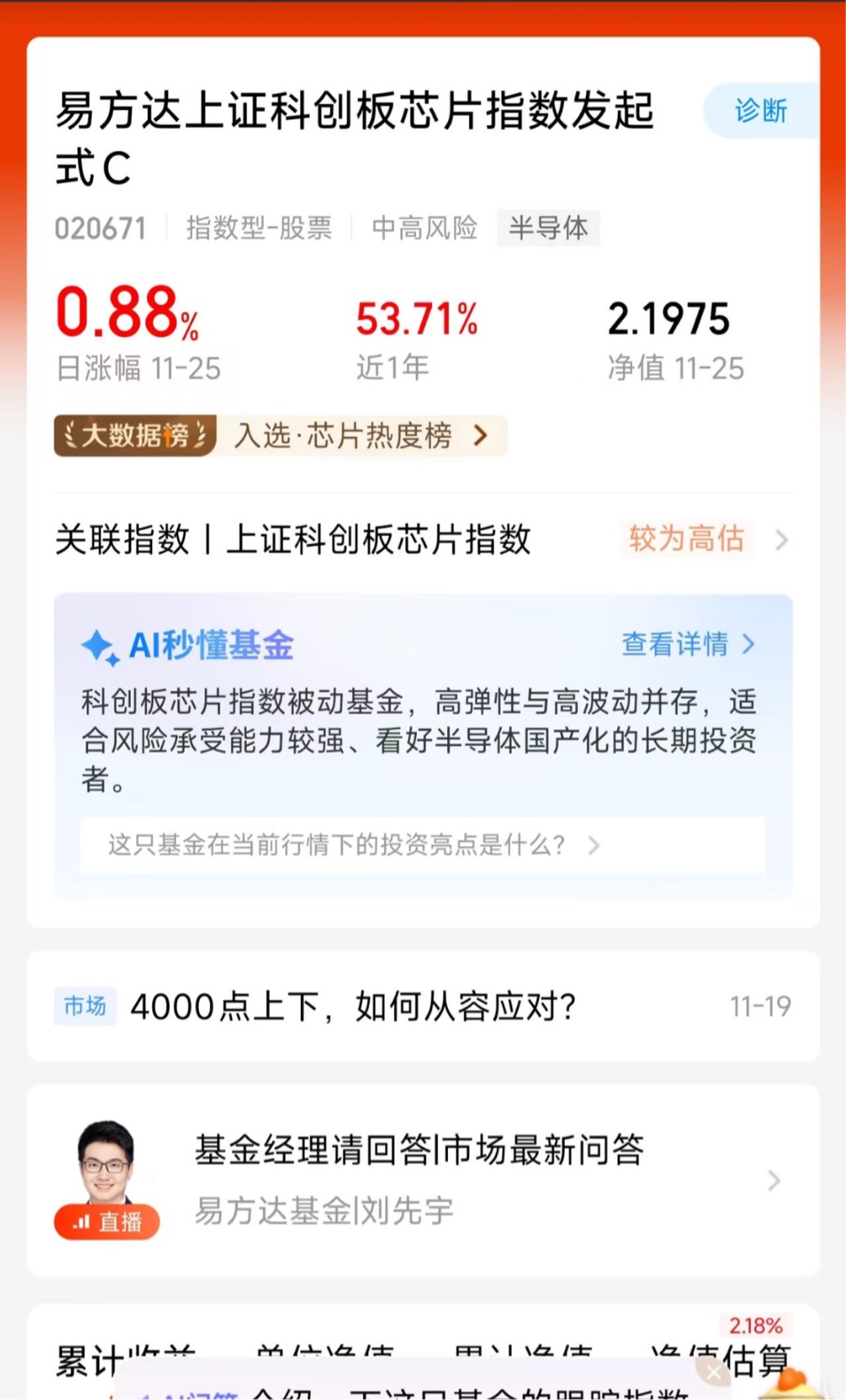 利好消息真的停不下来,国家大基金三期重点倾斜芯片制造与设备领域,多地出台集成电路产业扶持政策,科创芯片一路飘红,龙头企业订单排到明年,持仓基金净值稳步创新高$易方达上证科创板芯片指数发起式C$