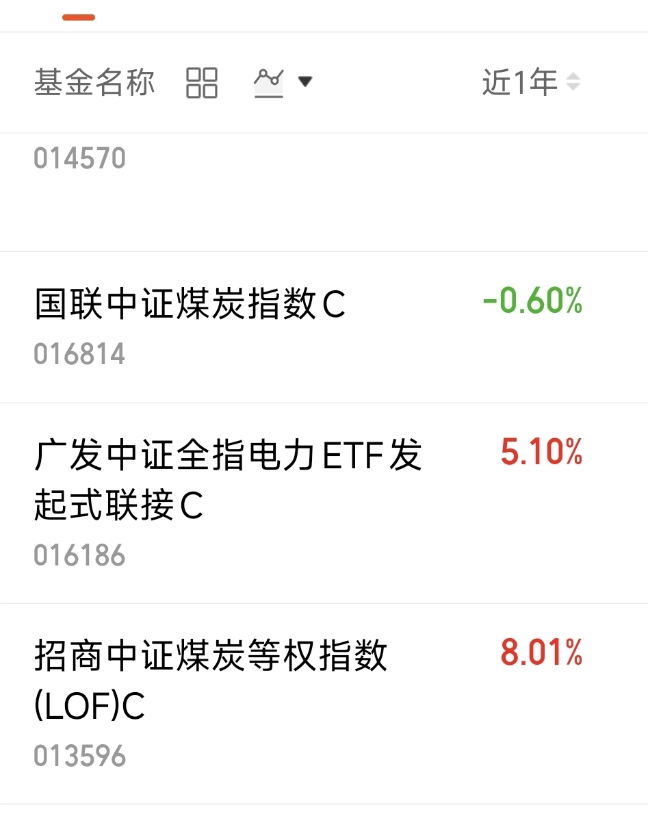 $国联中证煤炭指数C$ 近一年-0.6%。