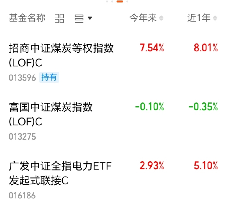 $招商中证煤炭等权指数(LOF)C(OTCFUND|013596)$近一年上涨8.01%;