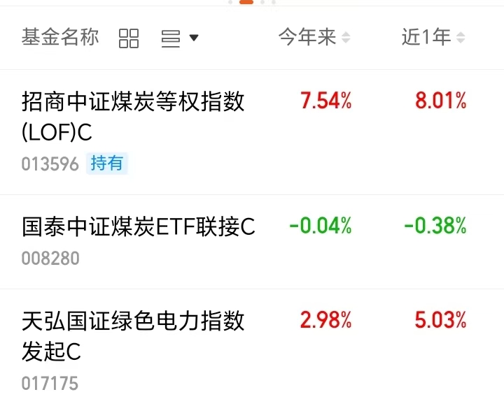 $招商中证煤炭等权指数(LOF)C(OTCFUND|013596)$近一年上涨8.01%;
