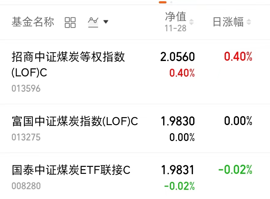 $招商中证煤炭等权指数(LOF)C(OTCFUND|013596)$上周五上涨0.4%