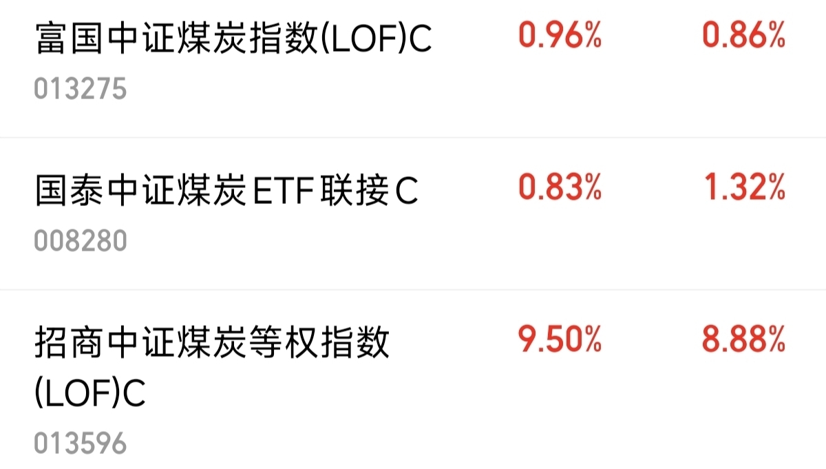 $国泰中证煤炭ETF联接C$ 0.83%。