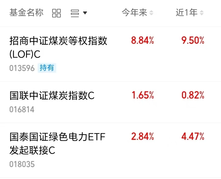 $国联中证煤炭指数C(OTCFUND|016814)$近一年上涨0.82%;