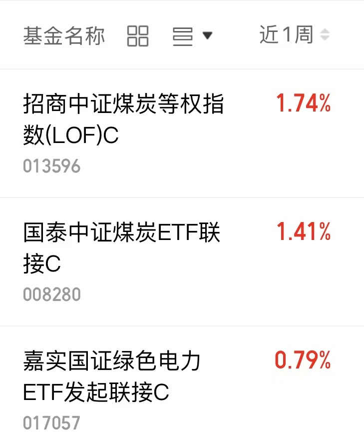 $招商中证煤炭等权指数(LOF)C(OTCFUND|013596)$近一周上涨1.74%