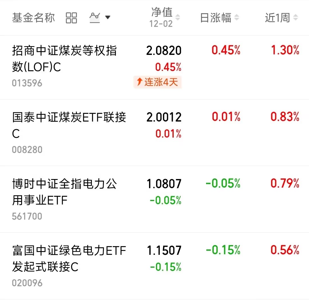 煤炭基金大多是混合型或主题型,基金经理会根据市场行情调整持仓,不用自己天天盯盘选个股。不管是长期配置当压舱石,还是短期跟着周期行情赚波段,都合适$招商中证煤炭等权指数(LOF)C(OTCFUND|013596)$近1周上涨1.30%,$国泰中证煤炭ETF联接C(OTCFUND|008280)$近1周上涨0.83%,$富国中证绿色电力ETF发起式联接C(OTCFUND|020096)$近1周上涨0.56%。