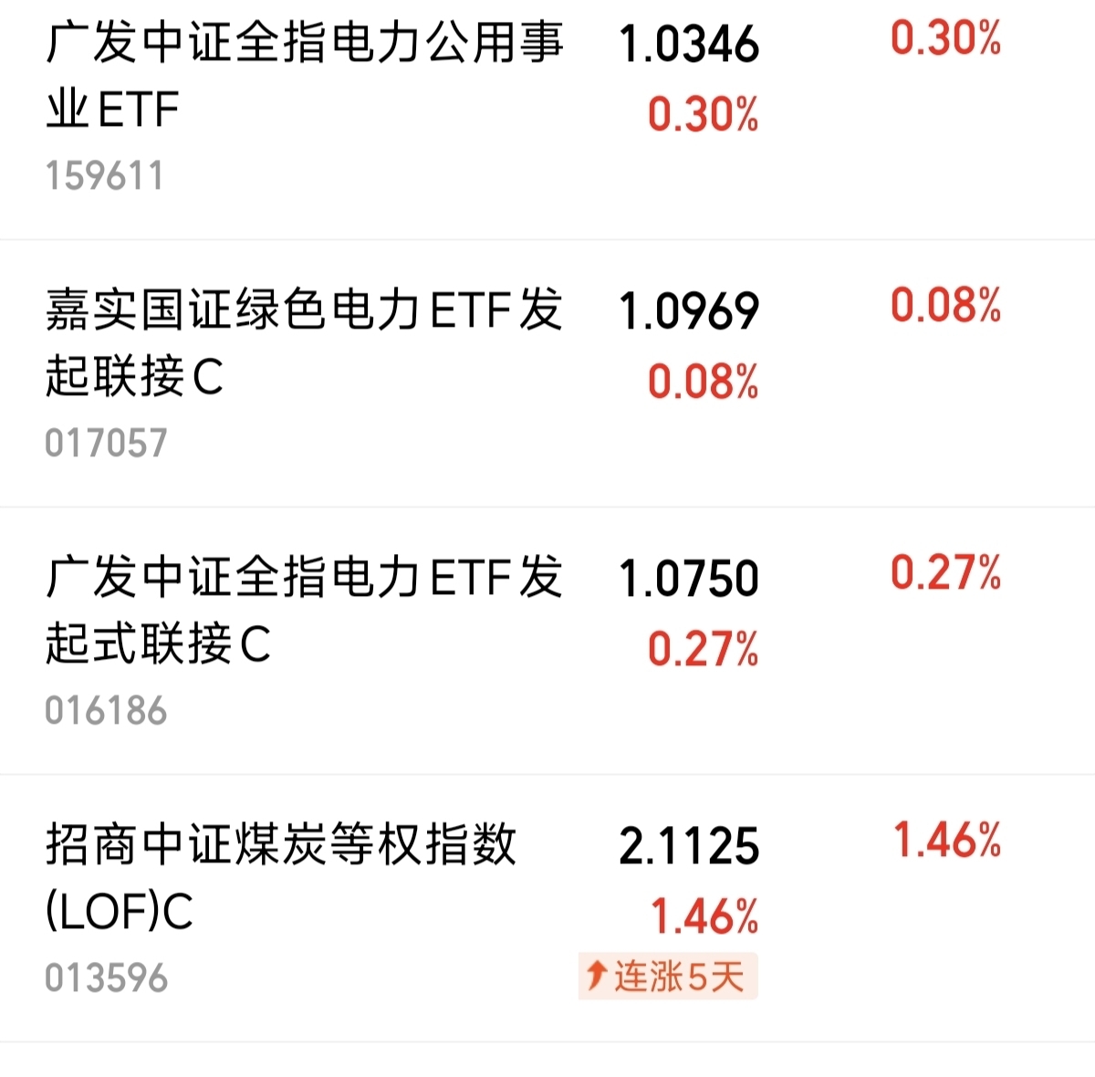 $广发中证全指电力公用事业ETF$ 0.3%。