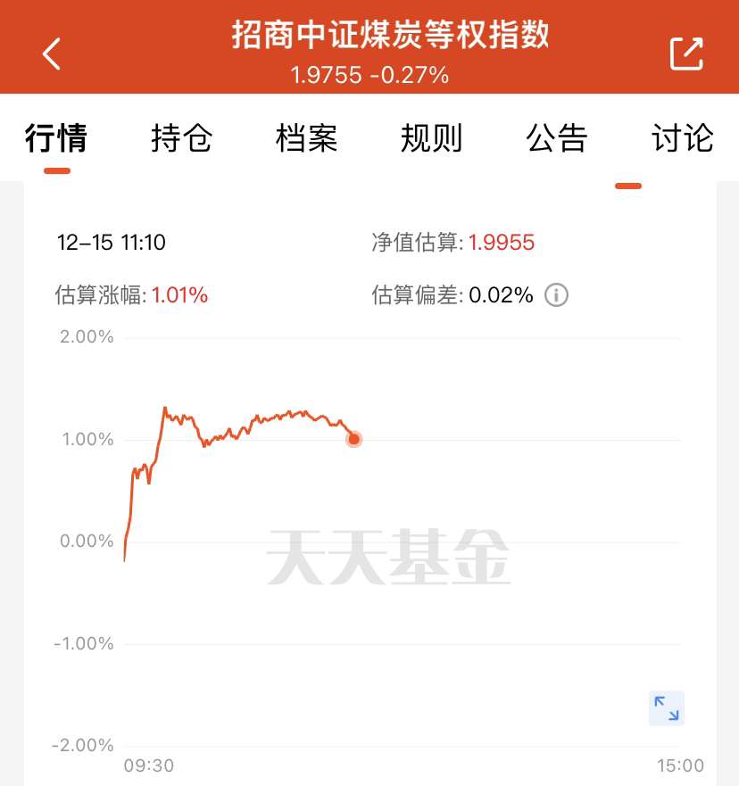 大盘低开冲高,科技板块虽有回升但分化明显,短期有风险。前期调整的银行、煤炭等红利资产再度上涨。$招商中证煤炭等权指数(LOF)C(OTCFUND|013596)$基金超对口,紧密跟踪中证煤炭等权指数,覆盖煤炭全产业链。近 1 月涨 10.56%,长期跟踪精准,涨多跌少,还采用指数化投资,适配当前行情。