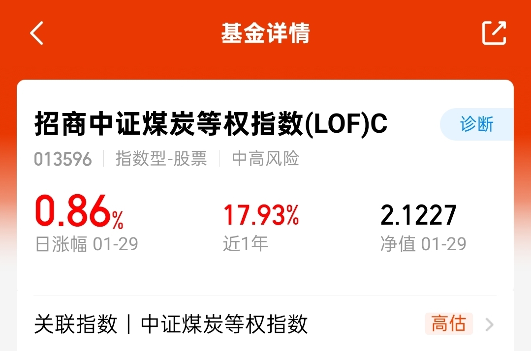招商中证煤炭C,周三涨4.44%,周四涨0.86,近一年涨幅达17.93%,看好