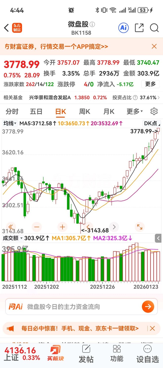 这时候就得说说中证2000指数了。这个指数专挑小市值公司,成分股平均市值不到100亿,里面藏着大量专精特新"小巨人"。2026年开年以来,小盘股明显跑赢大盘股,中证1000涨了8%,中证500涨了11%,而沪深300才涨0.65%。这种分化说明资金正在从传统蓝筹向高弹性成长切换,而中证2000作为小微盘的代表,正是科技浪潮中最容易冒出黑马的土壤。这些"小巨人"往往在细分领域有核心技术,一旦踩中风口,弹性比大白马强得多。
