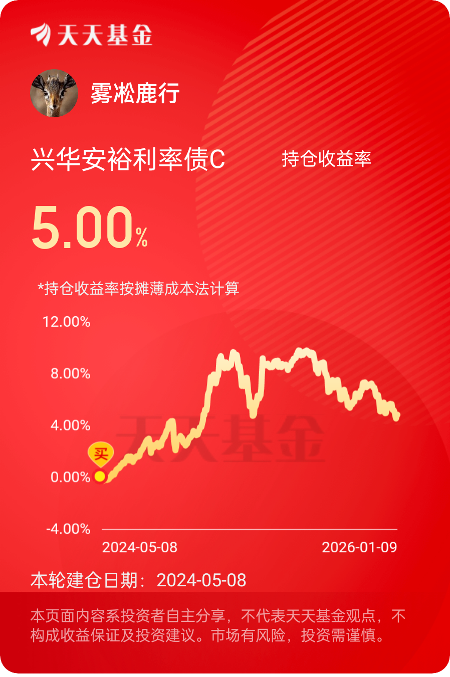 2026年债市震荡格局下,$兴华安恒纯债C$凭借中短债聚焦策略、低久期防御优势与稳健运作风格,有望在利率上行周期中实现风险与收益的平衡。对于风险承受能力较低、追求稳健现金流的投资者而言,该基金是把握债市结构性机会、抵御市场波动的优质配置标的。