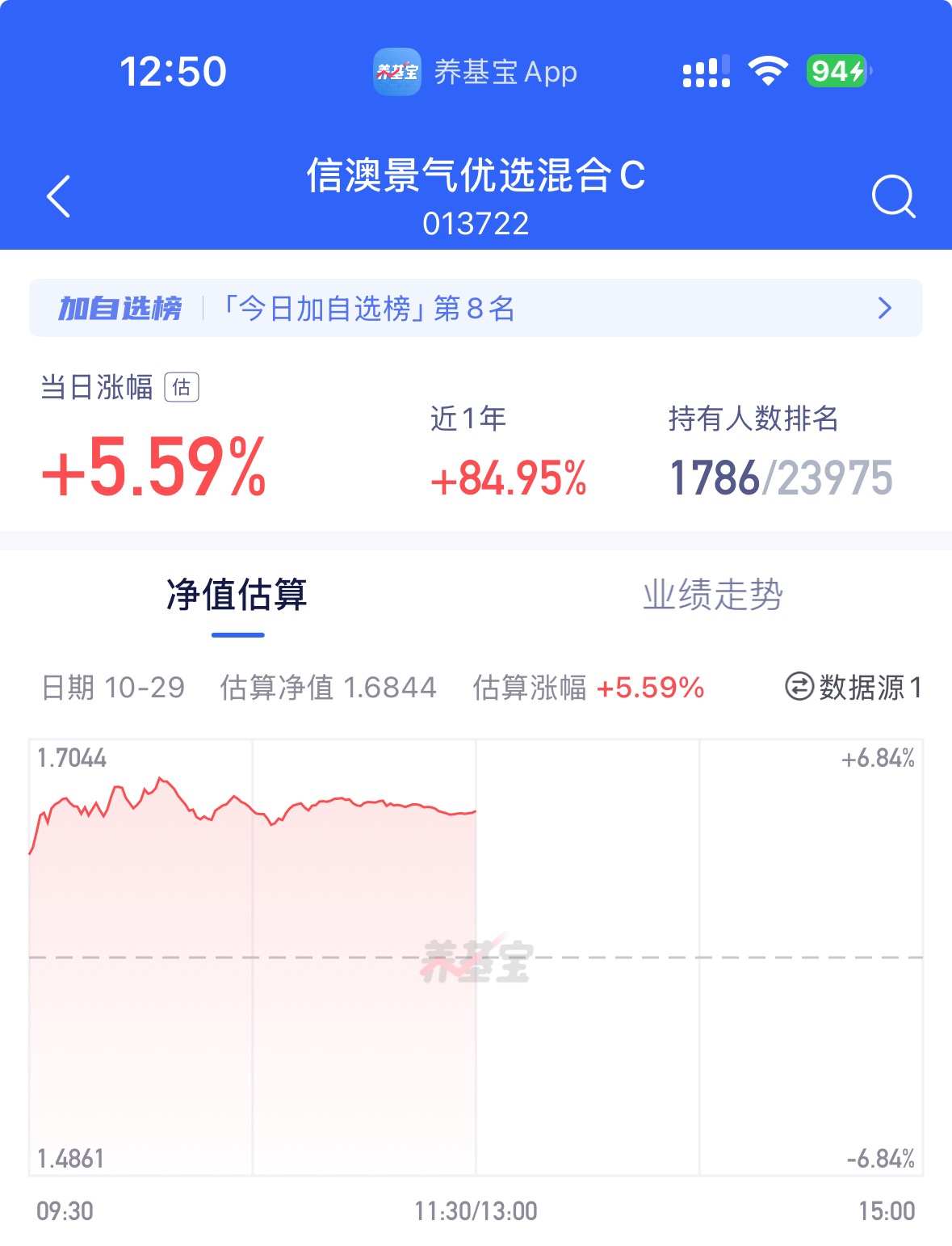 吴经理管理的$信澳景气优选混合C$今天估值大涨5.59%,以一骑绝尘的姿态领跑整
