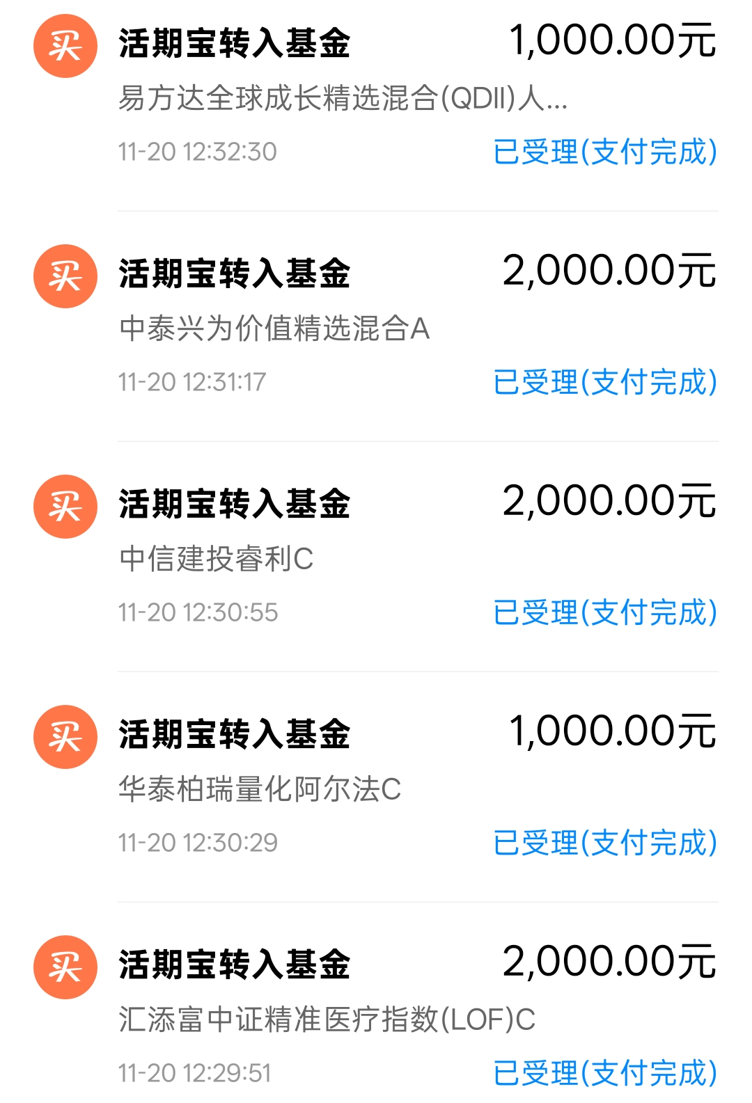 今天加仓价值精选、建投睿利、量化产品、全球成长、精准医疗,银行冲高回落减仓红利,所有中线标的继续持有。