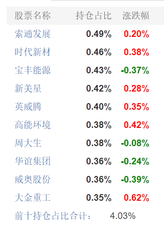 行业及个股权重均非常分散,前10重仓股集中度4.03%,单只个股持仓占比不足0.5%,有效分散了赛道及个股风险。