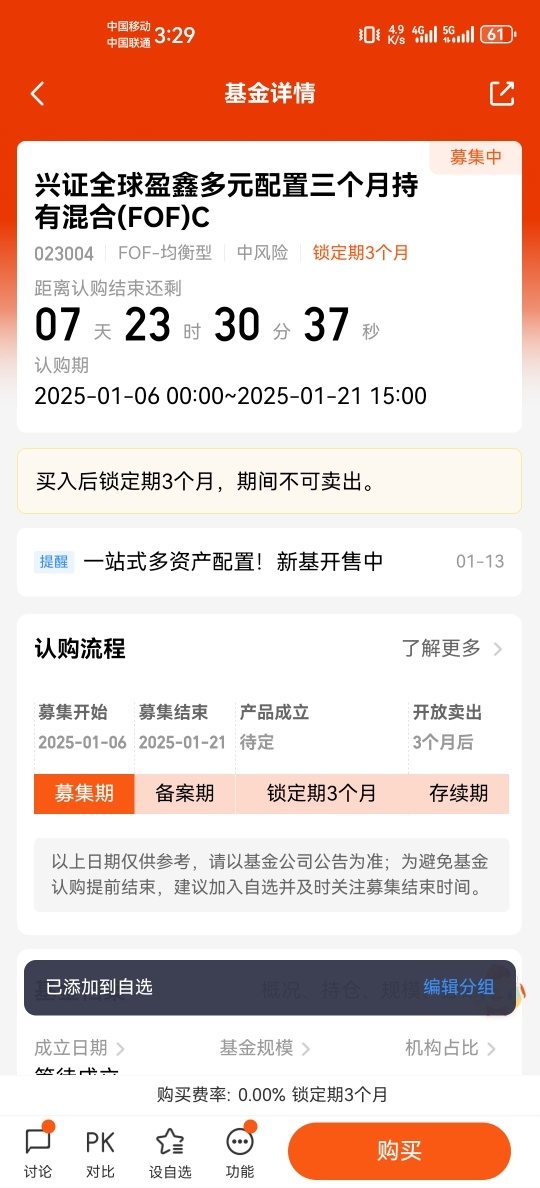 看这只基应该是兴全的开年力作了吧,放在新年的时点发,估计应该蛮不错的$兴证全球盈鑫多元配置三个月持有混合(FOF)C$