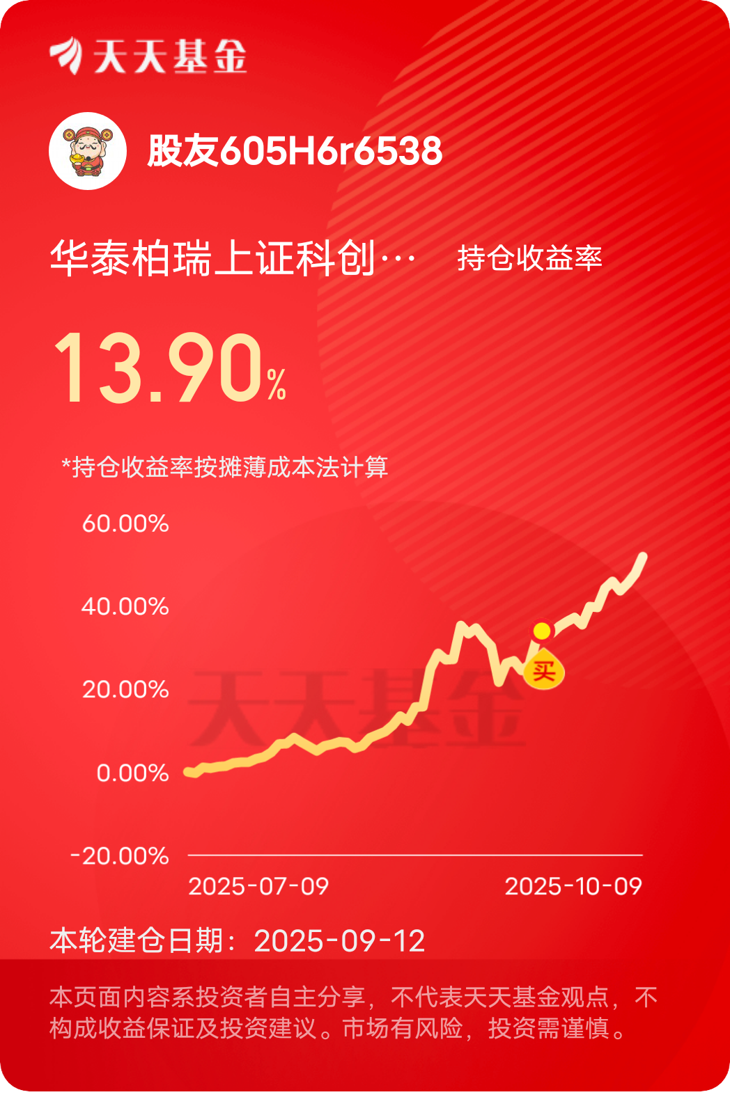 哇!刚看到$华泰柏瑞上证科创板50成份ETF联接C$ 的收益,一个月涨21%,三个月直接超50%!科技果然是主线,回调时加仓太正确了。