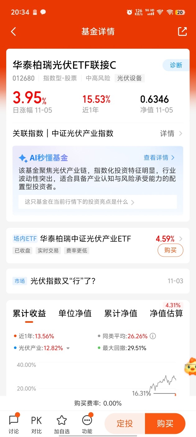 今天光伏板块的行情真得说道说道,低开高走特别带劲,资金加仓的痕迹很明显,看得出来资金对这个方向越来越有信心了。这行情不是瞎涨,背后逻辑挺扎实的。之前行业里内卷太厉害,大家都拼低价,赚不到钱,现在不一样了,反内卷的政策一直在推进,有些企业还主动降了开工率,供给端慢慢稳了。更关键的是,三季度整个板块终于开始盈利了,不像之前连亏好几个季度,基本面实实在在在改善。想跟着喝口汤又怕踩错个股的,华泰柏瑞的产品可以看看,专门盯光伏的,比自己瞎买稳,不过投资有风险,得谨慎点。#A股低开高走!国际资本看好中国资产# $华泰柏瑞光伏ETF联接C$