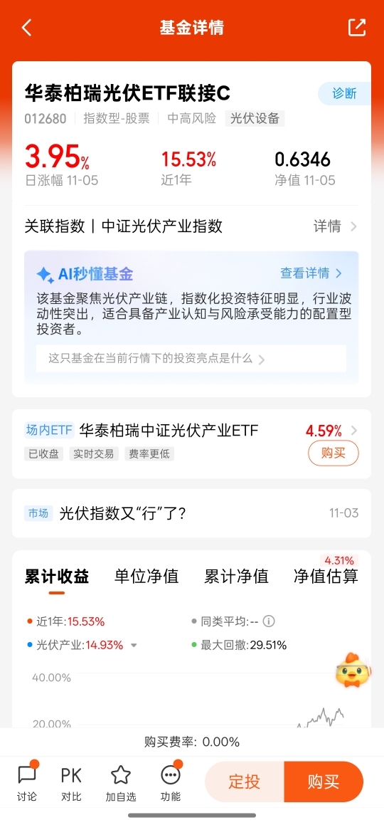 今天光伏板块的热闹大家该看到了吧?之前跌得让人没脾气,现在总算有点起色了。这可不是瞎涨,国家一直在强调反内卷,行业里大企业也开始控产能、不打价格战了,基本面实实在在在变好。硅料、硅片这些价格都稳下来了,龙头企业业绩也在回升。想跟着喝口汤又怕选不对个股,不如看看华泰柏瑞的产品,能一键跟上整个板块的节奏,不用自己费神盯票,挺适合咱们普通投资者的。