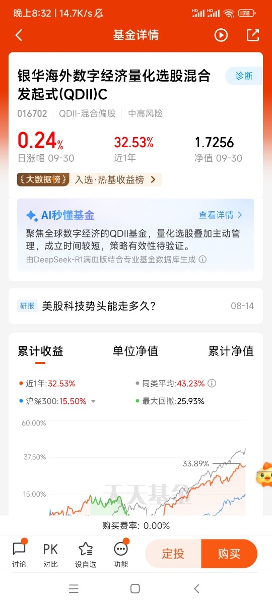 更值得称道的是基金的持有人友好设计。作为C类份额,其费率结构极具优势,持有满30天即可享受0赎回费,这不仅降低了我波段操作的成本,更契合长期持有策略下的成本控制需求 。银华基金5838.76亿元的管理规模与专业投研团队,则为基金的稳定运作提供了坚实保障,让投资者无需担心极端市场环境下的流动性问题 。