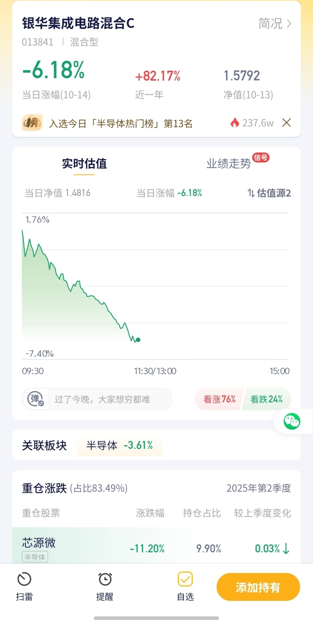 【银华集成电路混合C估值播报+10.14行情】银华集成电路混合C今日估算涨幅