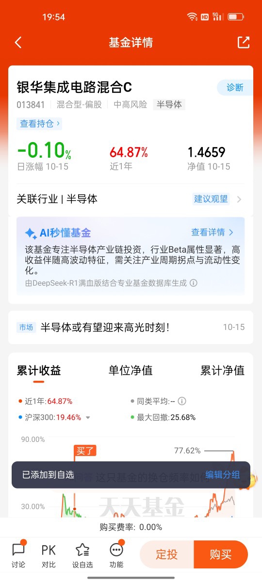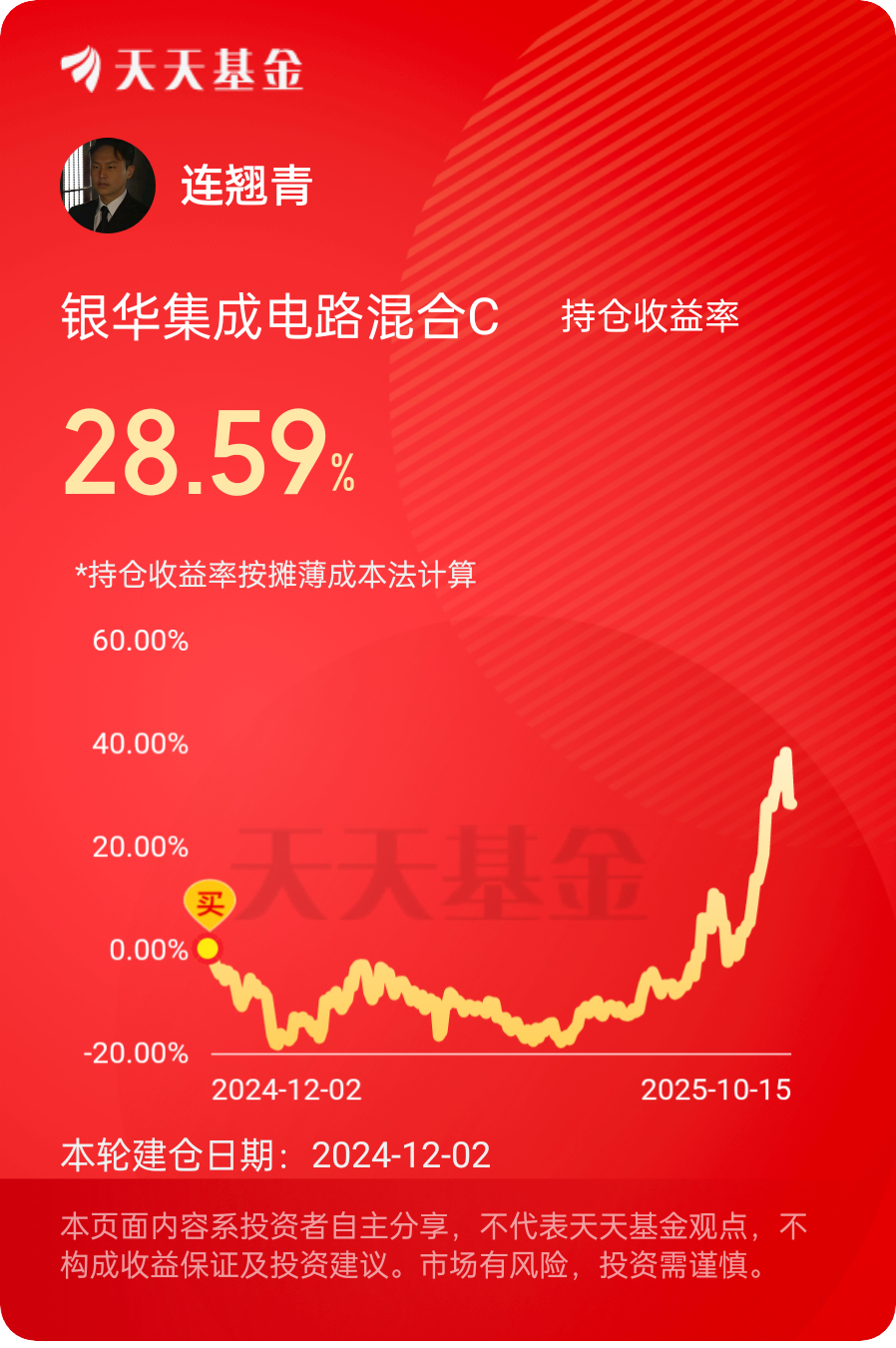 当然,投资半导体赛道也需要理性看待风险。比如海外技术限制可能会对国内半导体企业的研发进程造成影响,板块波动较大也可能导致基金净值短期回调。但我认为,这些风险恰恰是长期投资中的“试金石”——对于普通投资者而言,很难精准把握行业的短期波动,但通过持有像$银华集成电路混合C$ 这样聚焦长期趋势的基金,由专业的基金经理进行选股和择时,能有效降低个人投资的风险。就像我在持仓过程中,虽然经历过多次板块调整,但通过长期持有,不仅化解了短期波动的风险,还分享了行业成长的红利,截至目前,我的持仓收益率已超过25%,远高于同期沪深300指数的表现。#晒收益#