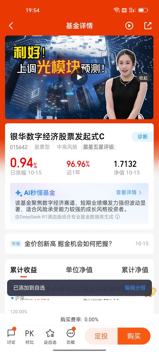 最后,我想分享一点自己的投资感悟:投资科技成长赛道,尤其是半导体这样的高景气、高波动行业,需要“长期视角+理性判断”。短期来看,板块可能会因情绪、政策等因素出现波动,但长期来看,行业的成长逻辑不会改变。$银华集成电路混合C$ 作为一只专注于半导体国产替代的基金,其持仓的企业多为行业内的优质标的,基金经理的投资策略也与行业长期趋势高度契合,这也是我选择长期持有的核心原因。在10月及未来的投资中,我会继续持有这只基金,并根据市场行情适当加仓,同时密切关注行业动态和基金持仓变化,与基金一起陪伴半导体行业的成长。