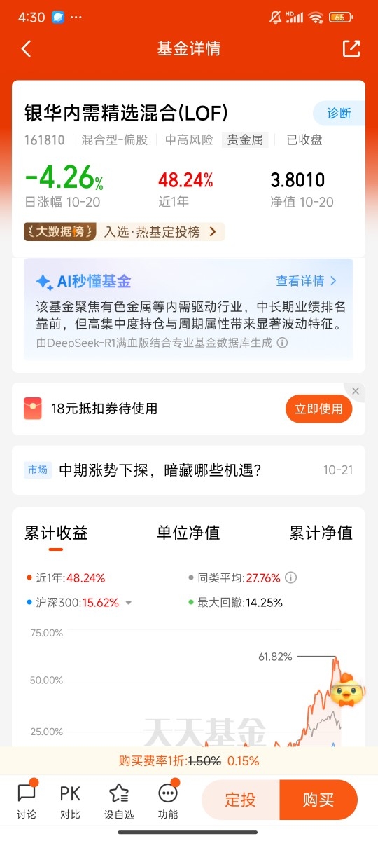 说到内需赛道的配置,银华内需(代码161810)是我重点研究的标的。这只基金的优势在于“布局早、覆盖全”,基金经理早在去年就开始加仓新型消费相关标的,目前持仓里既有智能家居龙头,也有连锁餐饮和文旅企业,兼顾了必选消费的稳定性和可选消费的弹性。从业绩表现看,它在今年二季度消费板块回调时,回撤幅度比同类基金小,主要是因为持仓里有不少现金流稳定的消费龙头,抗风险能力较强。不过要注意,这只基金是LOF基金,既可以在场内交易,也能场外申购,流动性很好,但波动相对偏大,适合能承受一定风险、看好内需长期复苏的投资者。