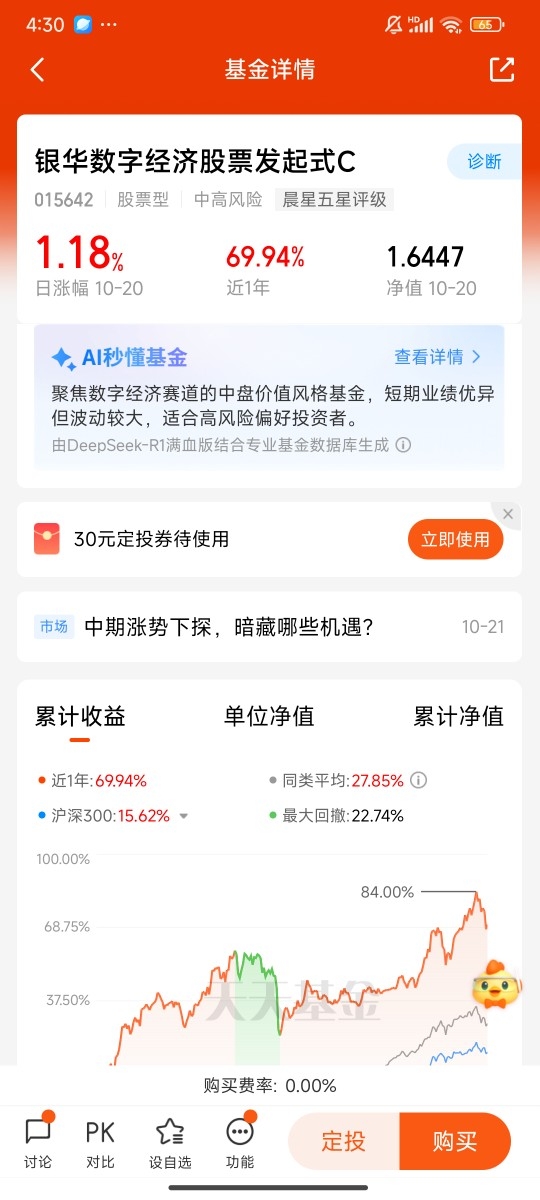 梳理完三个赛道,再聊聊我对10月操作的整体思路。首先是仓位控制,不会满仓押注单一赛道,计划科技、内需、黄金的配置比例大概是5:3:2,既保证进攻性,也留足防御空间。其次是操作节奏,对于科技和内需这些波动偏大的赛道,会采用“分批建仓”的方式,比如银华集成电路C,计划在大盘回调到3850点附近时加一部分仓,避免一次性进场踩在短期高点。最后是心态,震荡上行的行情里,最忌讳的就是“追涨杀跌”,既然看好赛道的长期逻辑,就要耐得住短期波动,给基金经理足够的时间去兑现收益。