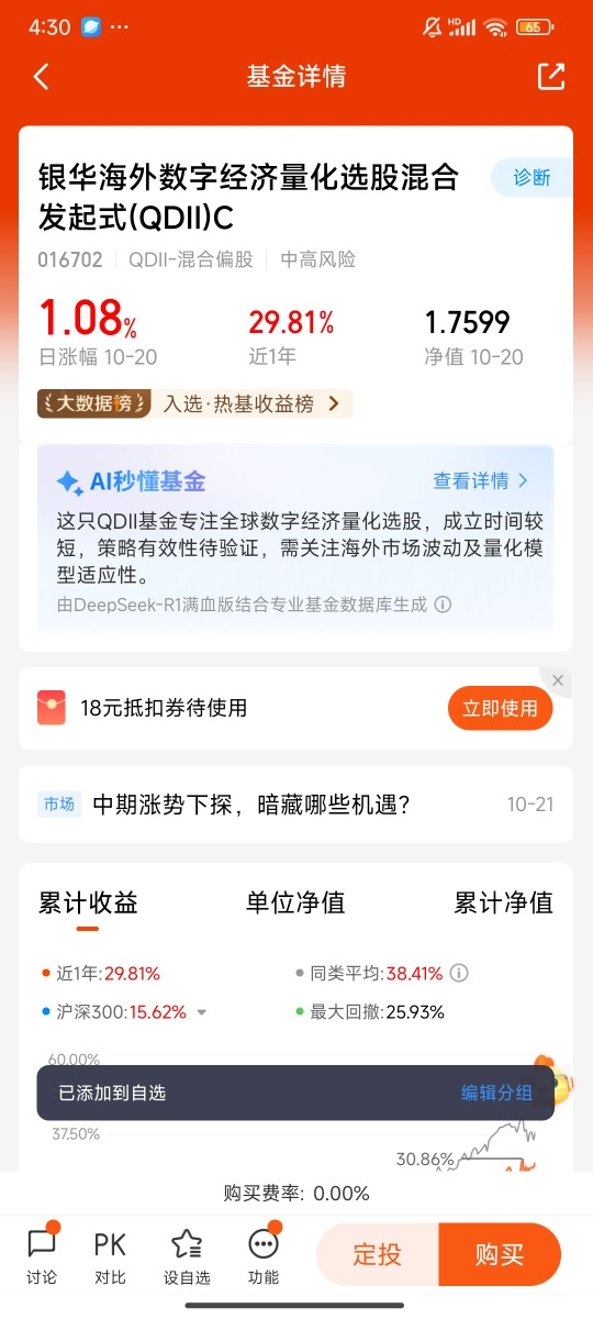 如果想拓宽视野,银华海外数字经济A也值得考虑。毕竟全球数字经济的核心资产不少在美股,像人工智能算力、云计算这些领域的龙头企业,技术壁垒和盈利能力都很强。这只基金聚焦美股和港股的数字经济标的,持仓兼顾了互联网平台和硬科技企业,能弥补A股科技板块在部分细分领域的短板。不过要注意,它是A类份额,适合长期持有,短期频繁操作的话,申购赎回成本会偏高,更适合作为科技配置的“压舱石”。