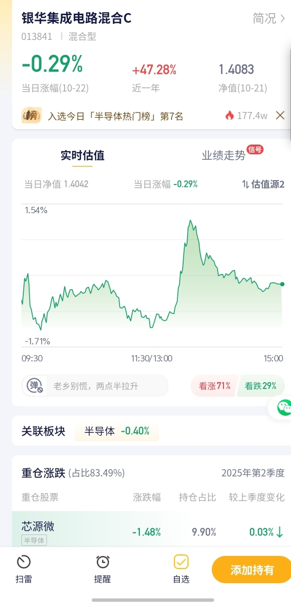 【银华集成电路混合C基金估值播报+当日行情】