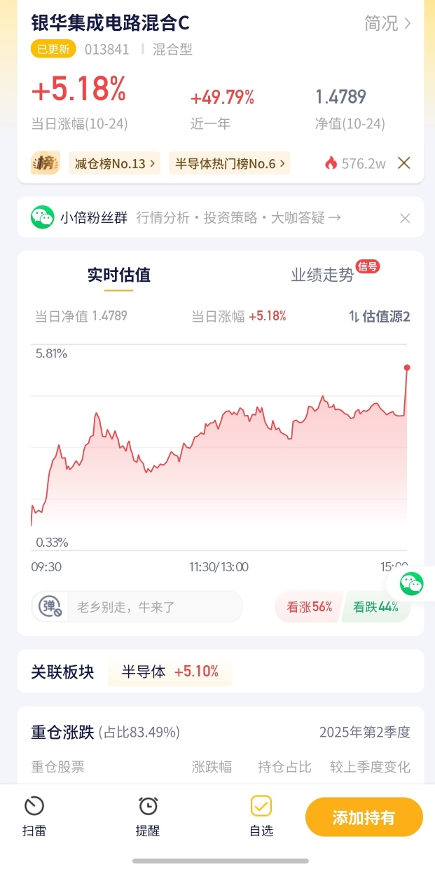 银华集成电路混合C今日预估涨幅5.18%!集成电路板块发力,该基金表现亮眼,对半导体集成电路感兴趣的可以重点关注~