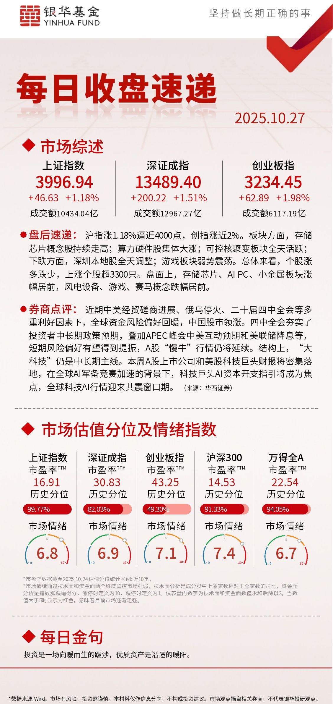 每日收盘速递 | 2025.10.27 沪指涨1.18%逼近4000点
